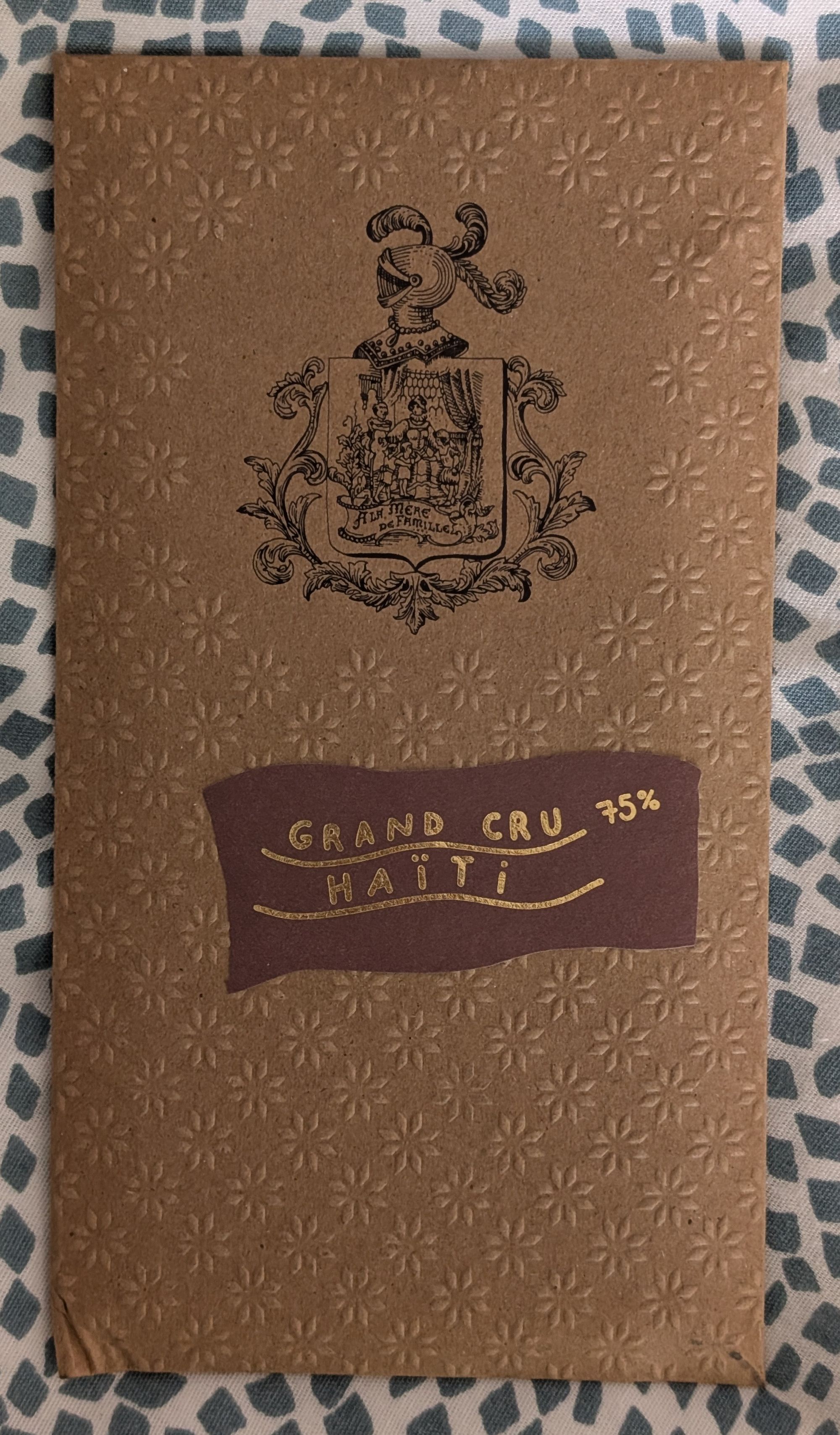 This is the second and last bar from the candy shop À la Mère de Famille, and it’s a 75% Haiti bar. The packaging is »