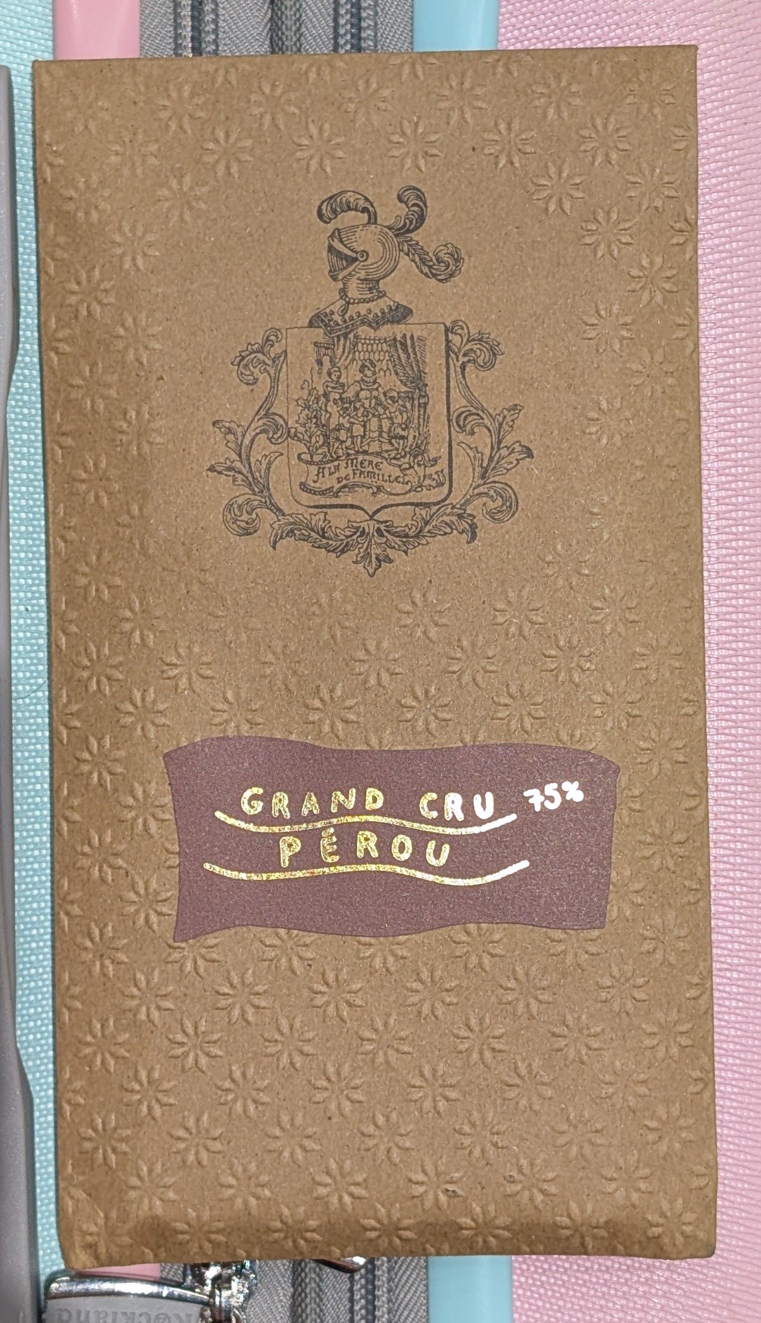 This is the second and last bar from the candy shop À la Mère de Famille, and it’s a 75% Haiti bar. The packaging is »