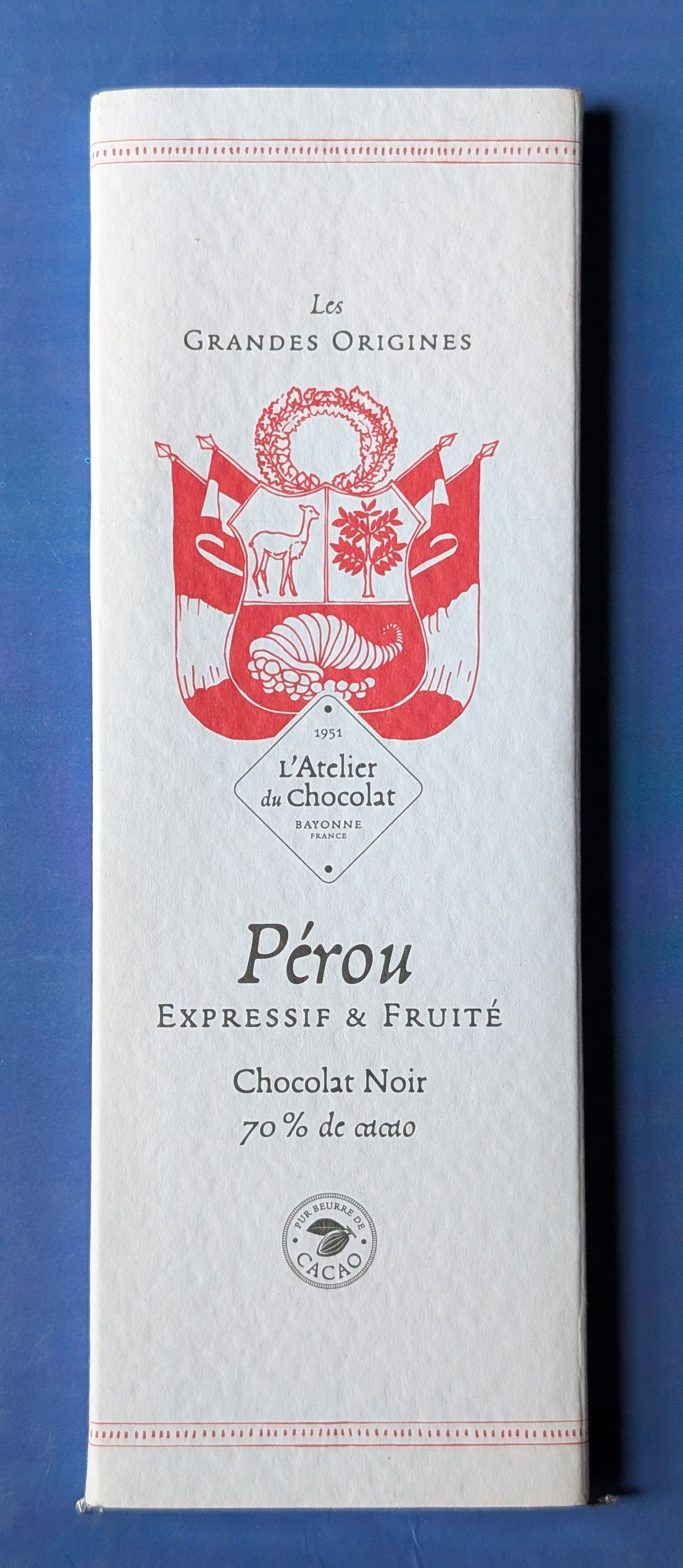 This is the second and last bar from L’atelier du Chocolat. Like the previous bar made with Venezuelan beans, I liked it. It’s very »